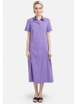 Gerade geschnittenes Kleid mit leicht ausgestelltem Rockteil aus Baumwolle mit einer Beimischung von Polyester und Elastan. Dieses Modell mit dezenter Taillierung hat einen leicht verengten Saum. Das Kleid ist mit originellen Raffungen an den Taschen verschönert. – aufgesetzte Taschen – Midi-Länge – Kurze Ärmel – Englisches HalsbandGrößenhinweisfällt größengetreu aus