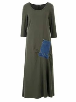 Dieses Kleid ist aus weichem Strickstoff gefertigt und hat die Länge bis zur Mitte des Knöchels. Die A-Silhouette des Modells schafft ein bequemes und lässiges Bild. – aufgesetzte Tasche – Maxi-Länge – Kurze ÄrmelGrößenhinweisfällt größengetreu aus