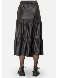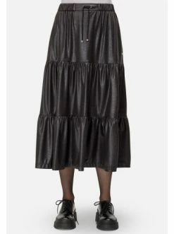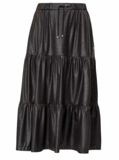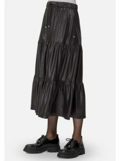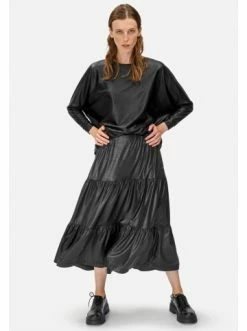 Stufenförmiger Rock in A-Silhouette. Modell in Maxi-Länge mit Gummizug in der Taille. Eine tolle Ergänzung für gemütliche Looks mit Oversize-Pullovern oder Strick-Rollkragenpullovern. – Maxi-Länge – Elastischer Bund – A-Silhouette – Nassleder-Effekt – Volants – VolanasGrößenhinweisfällt größengetreu aus