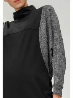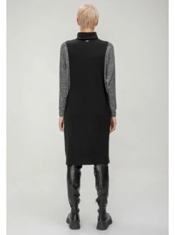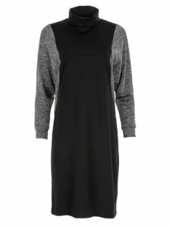 Kleid in Midilänge mit Stehkragen. Dieses Modell ist aus weichem Jersey gefertigt und mit kontrastierenden Ärmeln verziert. Bequemes, weiches Kleid für einen gemütlichen Look. – Kleid in Midilänge – Revers mit hohem Kragen – Langärmelig – Bequeme Passform – Kontrastfarbene ÄrmelGrößenhinweisfällt größengetreu aus