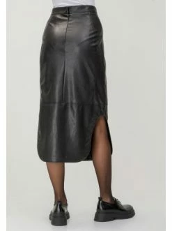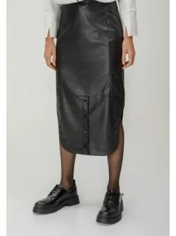 Rock aus Kunstleder. Das Modell ist mit einem originellem Saum mit Knopfleiste verziert. Ergänzt perfekt mit Strickwaren und Hemden. – Midi-Länge – Reißverschluss – Asymmetrischer Saum – Dekorative Knöpfe – Leder-OptikGrößenhinweisfällt größengetreu aus