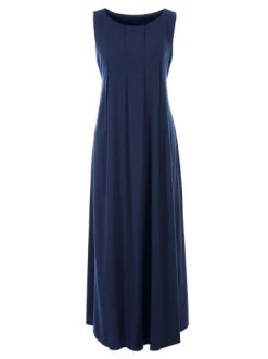 Ärmelloses Maxi-Kleid mit rundem Ausschnitt. Breite, großzügige Falten über die ganze Länge geben dem Kleid schönes Volumen, wobei die Taille durch den dekorativen Bindegurt schmeichelnd hervorgehoben wird. Ideal mit eleganten Stöckelschuhen. – Sommer Maxikleid – Ärmellos – Taille wird durch Gürtel betont – Luftige FormGrößenhinweisfällt größengetreu aus
