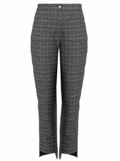 Klassische karierte gerade Hose für Damen. Asymmetrische Länge. Reißverschlüsse. Elastischer Bund. – Gerader Schnitt – Standard-Passform – Teilelastischer Bund – Ohne VerschlussGrößenhinweisfällt größengetreu aus