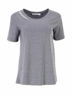 Kurzärmelige Bluse mit Markendruck. – Bedruckte Bluse – Sommerbluse – Kurzarm – Gerader Schnitt – RundhalsausschnittGrößenhinweisfällt größengetreu aus