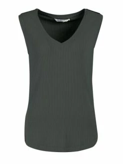 Lässiges Oberteil mit breiten Trägern. Das Modell ist aus Strickstoff mit gewebtem Schal gefertigt. Ergänzen Sie den lässigen Look mit Hosen und Röcken. – Gerader Schnitt – Ärmellos – Mit V-Ausschnitt – Abgerundeter SaumGrößenhinweisfällt größengetreu aus