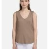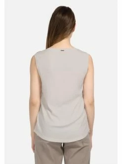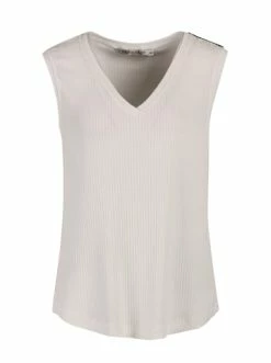 Lässiges Oberteil mit breiten Trägern. Das Modell ist aus Strickstoff mit gewebtem Schal gefertigt. Ergänzen Sie den lässigen Look mit Hosen und Röcken. – Gerader Schnitt – Ärmellos – Mit V-Ausschnitt – Abgerundeter SaumGrößenhinweisfällt größengetreu aus