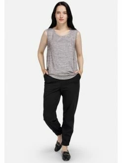 Ärmelloses Stricktop. Runder Halsausschnitt. Hervorragend kombiniert mit Jacken oder Strickjacken. Universelles Basic für jeden Kleiderschrank. – Gerader Schnitt – Ärmellos – Gestricktes Gewebe – GlitterGrößenhinweisfällt größengetreu aus