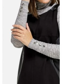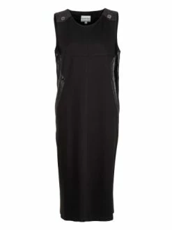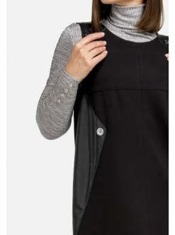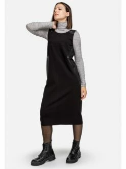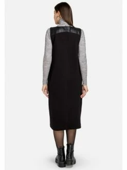 Midi-Trägerkleid mit Lederimitatbesatz. Gerader Schnitt. Kein Verschluss. Keine Taschen. Hemden, Rollkragenpullover, T-Shirts. – Gerader Schnitt – Ärmellos – Ohne TaschenGrößenhinweisfällt größengetreu aus