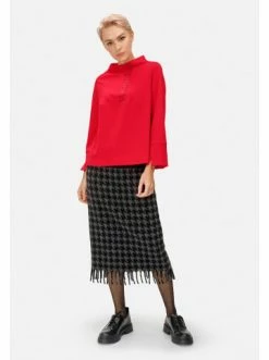 Rock in Midilänge mit Fransen. Gerade geschnittener Rock wird eine perfekte Ergänzung zu den Herbstlooks sein. – Gerader Schnitt – Midi-Länge – Natürliche Wolle – Mit Fransen – Trendiger Hahnentritt-PrintGrößenhinweisfällt größengetreu aus
