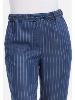 Lockere, nach unten schmaler zulaufende Hose im stilvollen Streifenlook. Komfortable Trageform dank elastischem Bund. Die Hosenbeine sind unten umgeschlagen. Eine sportlich-schicke Hose für jeden Tag. – Gerade Hosen – Lockere Passform – Bequemer Gummibund mit Kordelzug – Trendy Streifendruck – 7/8-LängeGrößenhinweisfällt größengetreu aus