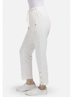 Figurbetonte Hose aus Fleece, mittelhoch mit zwei Taschen. An den Seiten der Hosenbeine sind mit Borte und Druckknöpfen verzierte Schlitze angebracht. Komfortable Passform dank des gummierten Taillenbunds. Optimal mit dem Sweatshirt aus dem Set. Moderne Klassik für daheim, unterwegs oder auf Reisen. – Gerade Hosen – Gummibund mit Kordelzug – Dekorative Knöpfe – 7/8-LängeGrößenhinweisfällt größengetreu aus